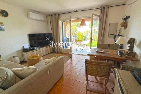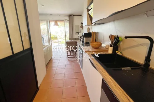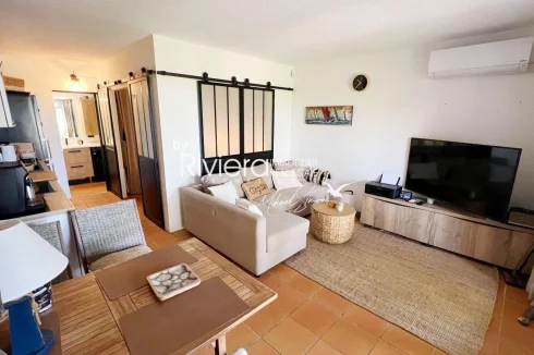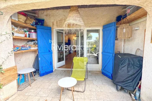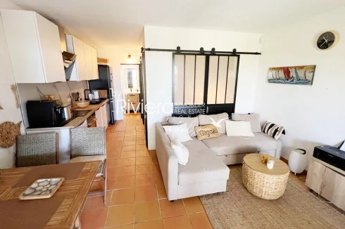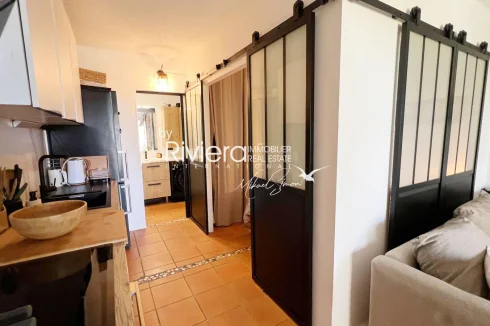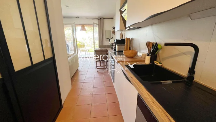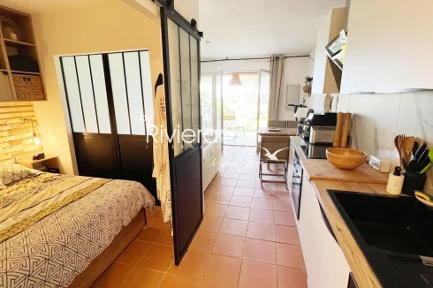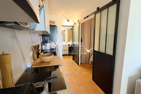 Located in a quiet area, discover this farmhouse converted into two rooms of approximately 32.75m2 with its covered terrace and its garden with sea view without vis-à-vis of approximately 29m2, south-west exposure, living room with equipped American kitchen, a bedroom with storage, Italian shower, toilet and private parking. Access to the beach on foot as well as to the swimming pool and tennis court of the residence... Privileged location! Contact Eddy Paron / (Ei) Rcs Frejus - Information on the risks to which this property is exposed is available on the Georisques website: