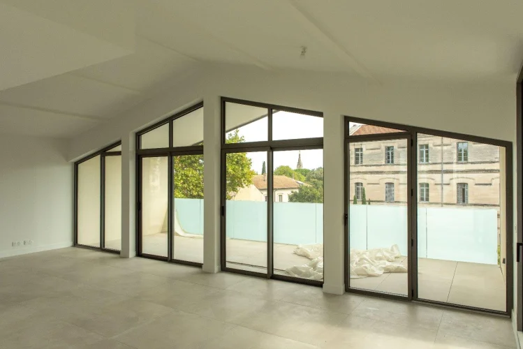 On the top floor of this superb new luxury residence, in the heart of this highly sought-after residential area, a stone's throw from shops and the tramway, discover this superb new contemporary apartment available immediately with reduced notary fees of 2% and sold with a double garage in the basement! The apartment benefits from a triple exposure and exceptional brightness, notably with an incredible glass gallery that distributes the different rooms. On one side, a vast living space with very high ceilings and direct access to a 35 m² south-facing terrace. On the other, a confidential sleeping area with 2 beautiful bedrooms, bathroom, toilet and dressing room. Possibility of creating a 3rd bedroom. All the rooms of the apartment overlook the private park of the residence and benefit from optimal sunshine. Last opportunity to seize this exceptional property in this highly sought-after area!