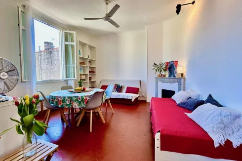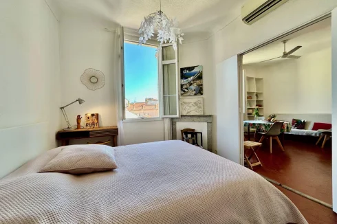 Located just a two-minute walk from the prestigious Palais des Festivals, the train station, and the Marché Forville, discover this charming apartment offering 48m² of living space (Loi Carrez) and 61m² of habitable surface area, nestled on the top floor of a quiet, north/south-facing building.
