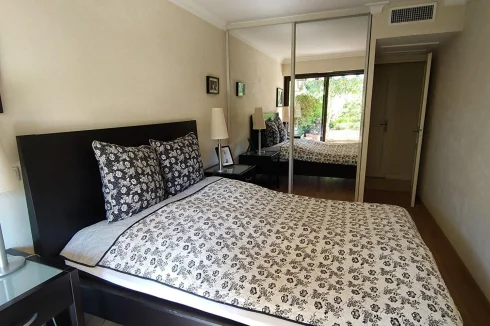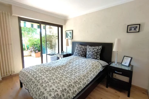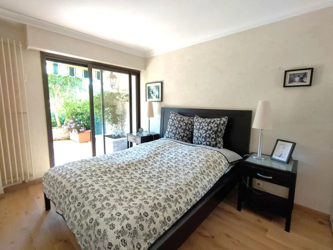 Cannes Marina, in one of the most sought-after residences, we offer for sale this renovated and air-conditioned 3-room apartment. The apartment consists of an entrance hall, a living/dining room, a separate kitchen, a bedroom with dressing room, a shower room with Wc, a storeroom, a second bedroom with bathroom and Wc, dressing room, a large and beautiful terrace, with trees, facing South with private access through a small gate. In the annex: A closed garage in the basement as well as a beautiful cellar. Secure residence with caretaker, swimming pool, in the immediate vicinity of the Old Course Golf Course. !