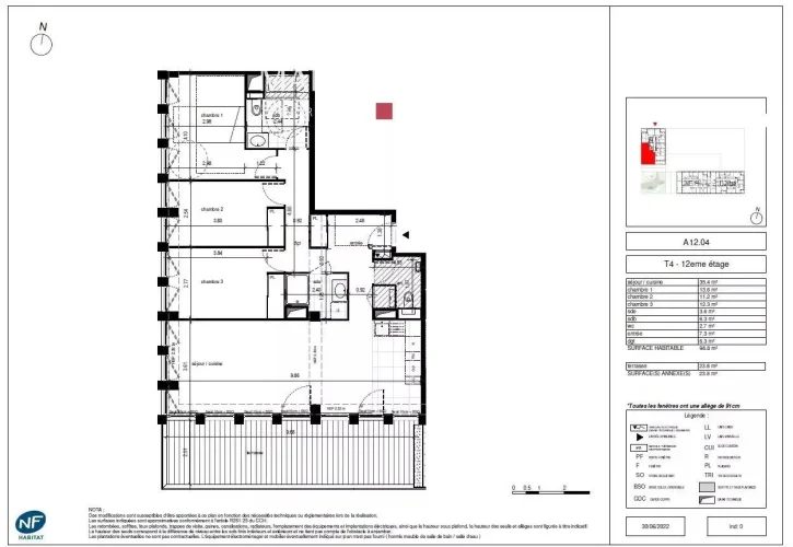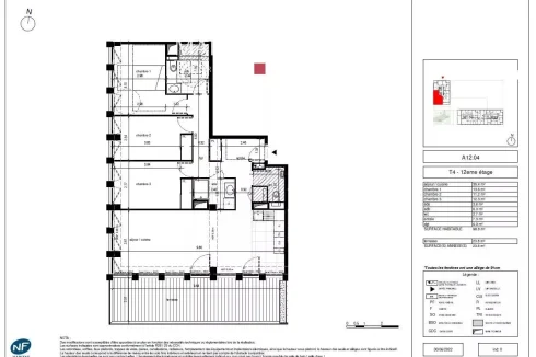 This brand-new 3-room apartment of 99 m² is located on the 12th floor. It features a spacious 24 m² south-facing terrace, offering a clear, panoramic view over the city.