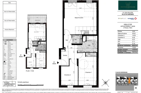 2 bedroom apartment with a private garage. Other lots and floor plans are available on request. Located in the inner suburbs of Paris in the Hauts-de-Seine department, Suresnes is ideally situated on the banks of the Seine and less than 15 minutes from Paris. It is close to shopping streets, schools and administrative, cultural and health services. Come and discover a new construction of a development comprising 238 apartments in 8 buildings, a co-living residence, a 4-star hotel and parking facilities on 3 basement levels. Quai Gallieni/rue Benoît Malon/rue Salomon de Rothschild, just a stone's throw from the Seine, Metamorphose is a beautiful residential development bordered by a planted green space. You'll love the beautiful studio to 5-bedroom flats and villa flats with generous outdoor spaces : balconies, sky terraces or private gardens. You'll enjoy a landscaped inner courtyard and, for some, beautiful, unobstructed views of the Bois de Boulogne, La Défense and Mont Valérien. In this leafy setting, which will include green roofs, through-ground gardens and a pedestrian walkway, you'll be less than 10 minutes from the town centre's shops, schools and public, cultural and sports facilities. The Tram T2 Belvédère stop is 600 m away, providing easy access to La Défense (Rer A, M1, Transiliens L and U). By 2030, the Rueil-Suresnes Mont-Valérien station will also be available. The residence will be Nf Habitat Hqe and Biodivercity® certified.