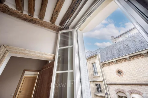 Located on the first floor of a beautiful freestone building with an elevator, it faces the Carnavalet Museum.