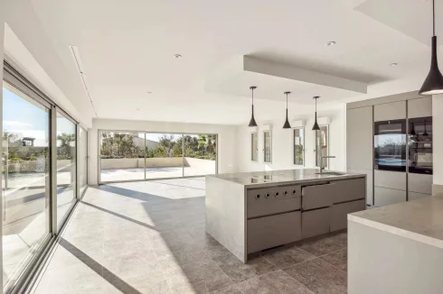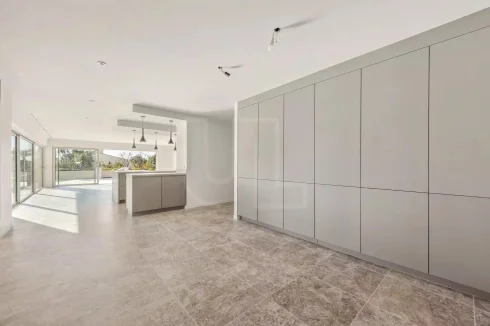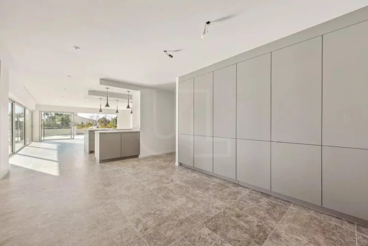 The second apartment, spanning around 141 m², mirrors the elegance of the first, with a well-appointed living and dining space, an open plan kitchen, and access to a spacious terrace that overlooks the sea. It also features three en-suite bedrooms, guest toilets, a cellar, and an open garage.
