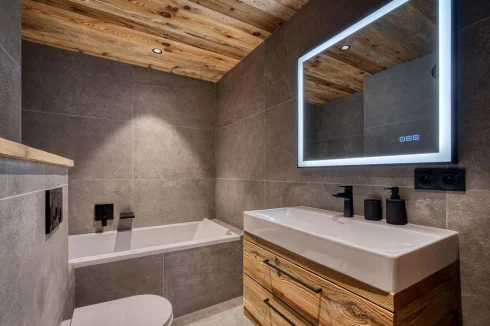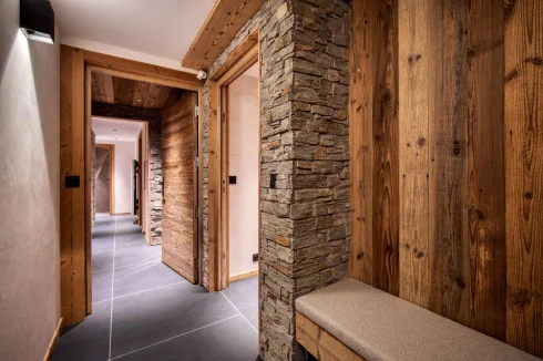 In a warm, contemporary atmosphere designed by professionals and built by Savoyard craftsmen, with an emphasis on noble materials (old wood, stone, lime plaster, wall hangings), you will appreciate the practicality and comfort of this well-equipped flat (two fully-equipped kitchens, spirit bars with wine cellars, built-in wardrobes in all 7 bedrooms, 6 bathrooms).
