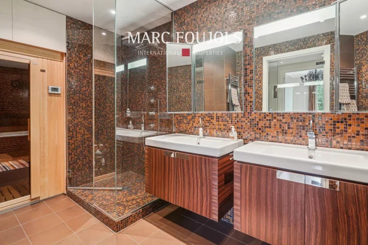 This south-facing apartment in perfect condition, with unobstructed views, is located on the 2nd floor of a building with 24/24 video surveillance. It comprises an entrance hall, living room with balcony, independent, fully-equipped kitchen, dining room (or 3rd bedroom), two suites, guest toilet and sauna.