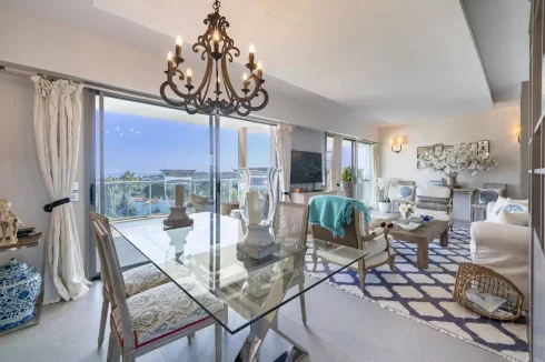 This superb penthouse occupies the top floor and offers an expansive 250 square metre terrace with uninterrupted views of the sea. The property features a bright and contemporary interior layout, with a comfortable living space and three bedrooms, each benefiting from its own private shower room. The design emphasises natural light and modern style throughout.