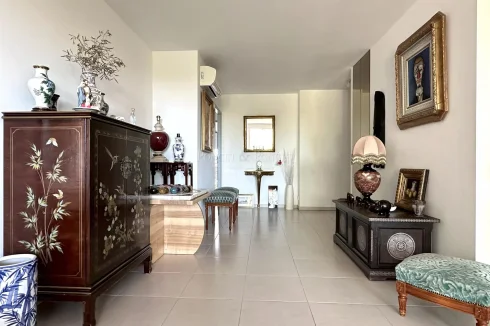 - A beautiful terrace/loggia overlooking a landscaped garden, offering an unobstructed and picturesque view.
