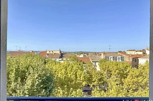 On the 4th and top floor with elevator of a high-quality building with unique architecture, discover this rare apartment offering a panoramic and unobstructed view over the famous Allées Paul Riquet.