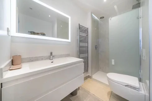 This contemporary two-bedroom apartment in Cap d’Antibes offers a blend of modern luxury and comfort, with each bedroom featuring an en suite bathroom and direct access to private terraces. From one of the terraces, residents can enjoy captivating sea views, creating a serene and picturesque setting to relax and entertain.