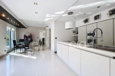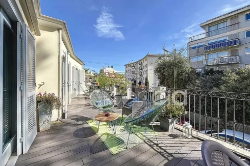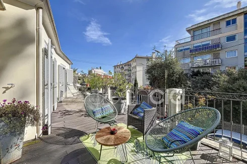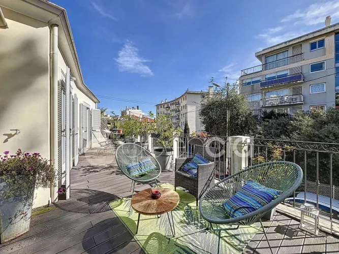 Spacious three-room apartment – Like in a house, on the 1st and last floor. Enjoy an idyllic living environment with this 91 m² apartment located next to the Forville market. Just minutes from the beaches and the city center. It includes an entrance, a double living room with cupboard which opens onto a spacious terrace, an American kitchen with central island, a bedroom with cupboard, a shower room with toilet, a second bedroom with a shower room with toilet. The apartment is sold with ample indoor parking.