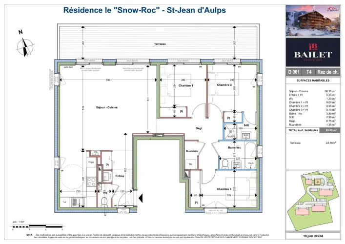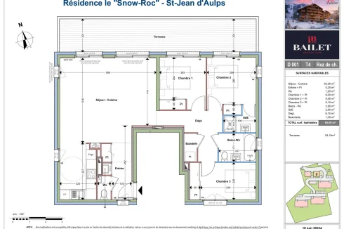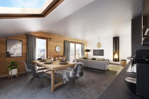 3 bedroom apartment in a chalet. Enjoy the panoramic view on the valley. Snow Roc, our new mountain residence in the heart of the Portes du Soleil, offers beautiful, cosy flats in 3 buildings and 4 independent chalets facing the slopes and Roc d'Enfer. Nestling right in the heart of the mountains, between Mont Blanc and Lake Geneva, the world of Snow Roc combines charm and authenticity. Using the finest materials, the residence will win you over with its warm, modern feel. In addition to their optimised, functional layout, all the chalets have balconies or terraces so you can enjoy the magnificent views over this beautiful village. Located at the foot of the slopes and at the start of the main Roc d'Enfer ski lift, you're within easy reach of a wide range of cultural, sporting and family activities. Local developer Laurent Bailet offers you his latest creation in a unique setting at an altitude of 1000 metres, with accommodation facing the ski slopes and the typical village of Saint Jean d'Aulps, ski-in, ski-out.