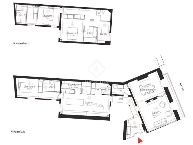 Lucas Fox International Properties, in the sought-after Golden Triangle area of Montpellier, between the Arc de Triomphe, the prefecture and the Saint-Anne church, apartment in a charming Haussmannian building currently being renovated (roof, facades, entrance, staircase and installation of an elevator). On the 2nd floor, a dual-aspect apartment comprising a traditional part and an unusual part (duplex). The 143 m² of which it is composed are arranged as follows: (bourgeois part) entrance hall, living room and dining room opening onto delightful city balconies with a view overlooking the Arc de Triomphe and its rue Foch (unusual part) eat-in kitchen, 3 bedrooms and two shower rooms. Ideal for residential, office, or commercial use. This charming apartment offers great potential. A private cellar and shared bike/scooter storage area are available. Interior renovations are planned, and it is possible to subscribe to a "works contract" allowing you to be accompanied by an architect for the complete renovation of the apartment. The total budget (land + works) would amount to €796,000. The completion of the building renovation work is scheduled for June 2025. Information on the risks to which this property is exposed is available on the Géorisques website: