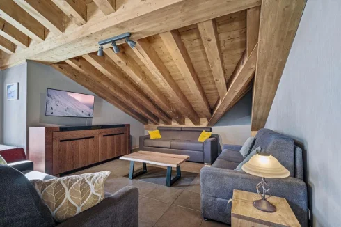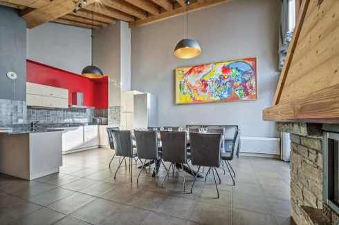 Discover this high-end apartment located in the heart of Val Thorens, with direct access to the slopes and close to all amenities. This stunning 143.41 sq.m apartment (128.31 sq.m Carrez) is situated on the top floor of a modern building constructed in 2008. It offers exceptional features for a unique mountain living experience.