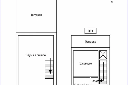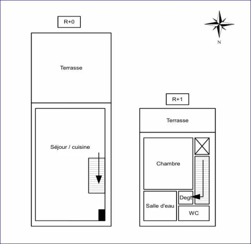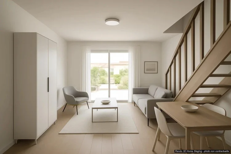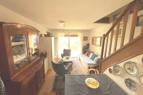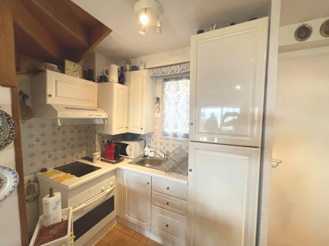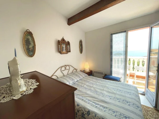 Sole Agent : In a quiet, secure residence, furnished 2-room duplex flat with panoramic sea view, featuring a south-facing semi-covered terrace, a living room and a kitchenette. First floor: bedroom opening onto balcony, shower room and separate toilet. Garage with utility room and storage space.