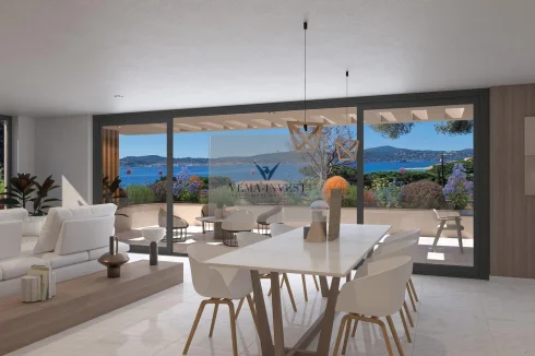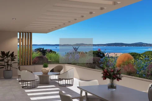 In a superb luxury residence, a stone's throw from the sea with a view towards the village of Saint-Tropez. Apartment with 5 main rooms on the first and last floor offering 148 m2 of living space as well as a terrace of approximately 58 m2. High-End services and finishes. Equipped kitchen and a closed garage of 92 m2 in the basement. All comfort, very sought-after quiet area close to the city center. Delivery T3 2025. Frs not ed. File on request.