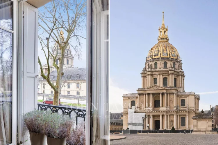 On the first floor of a prestigious building with a caretaker, we offer you a 112 m² apartment (Carrez law) with stunning views of the Invalides.