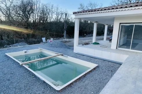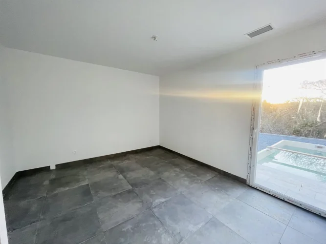 Will offer you all modern comforts in 125m2 hab. On one level, 3 bedrooms including a master suite, a spacious and bright living room of 59m2 opening onto the pleasant covered terrace and the pool area.