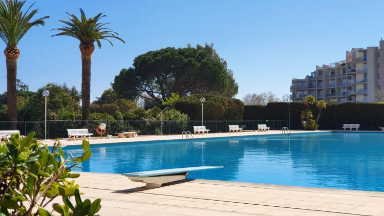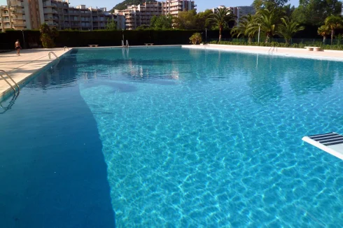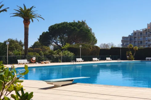Residence with swimming pool and caretaker, within walking distance of shops, the sea and the golf course. (5.43 % of fees including VAT to be paid by the buyer.)